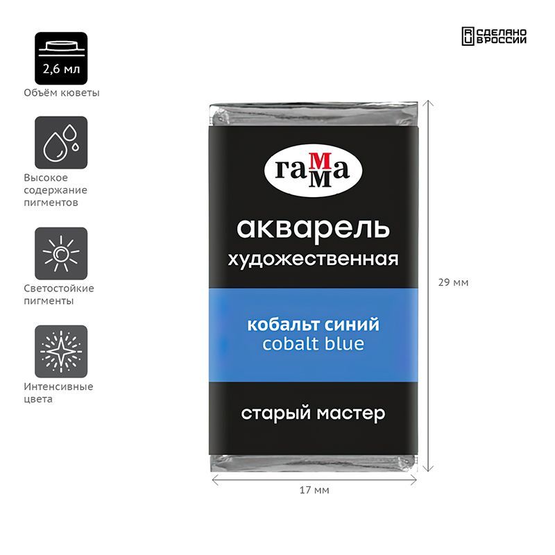 Читать все статьиАкварель художественная Гамма «Старый Мастер» кобальт синий, 2,6мл, кювета
