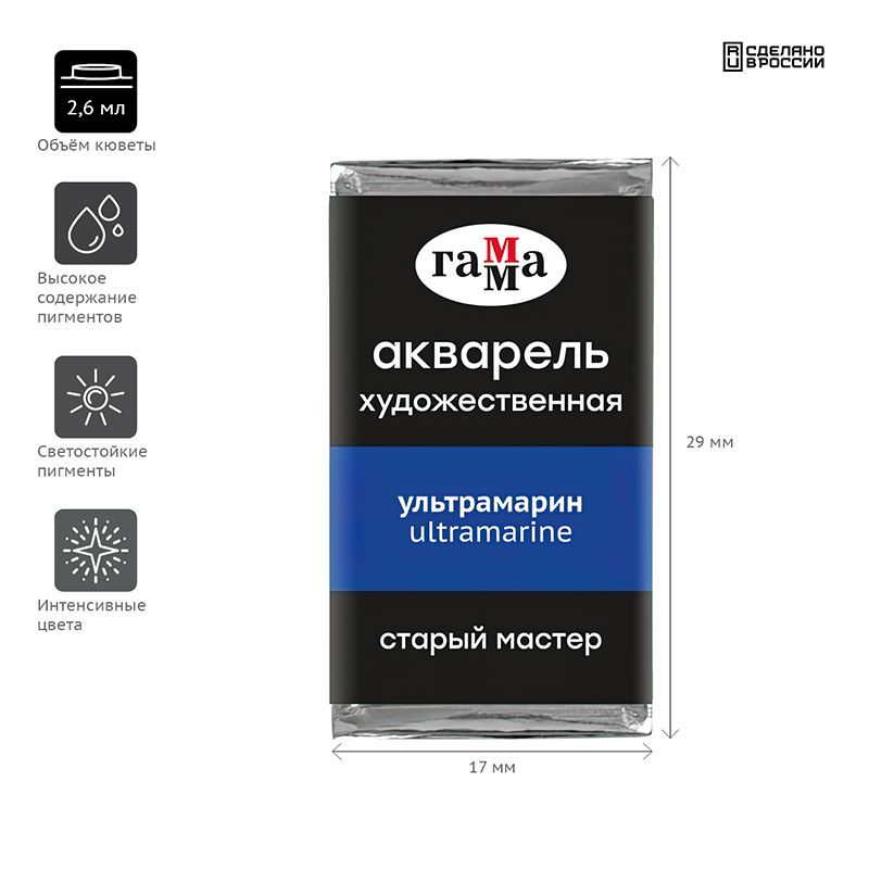 Читать все статьиАкварель художественная Гамма «Старый Мастер» ультрамарин, 2,6мл, кювета