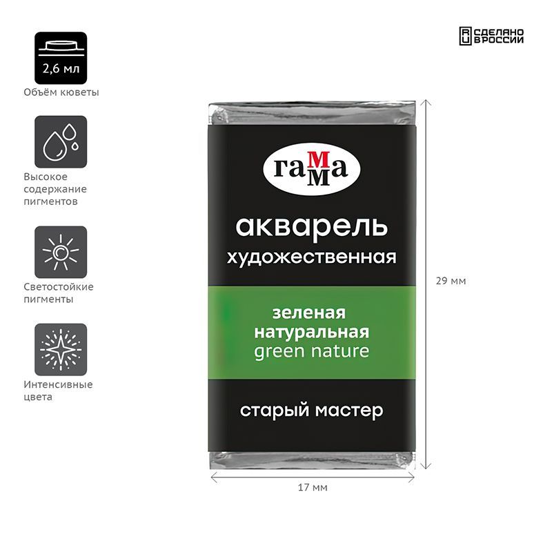 Читать все статьиАкварель художественная Гамма «Старый Мастер» зеленая натуральная, 2,6мл, кювета