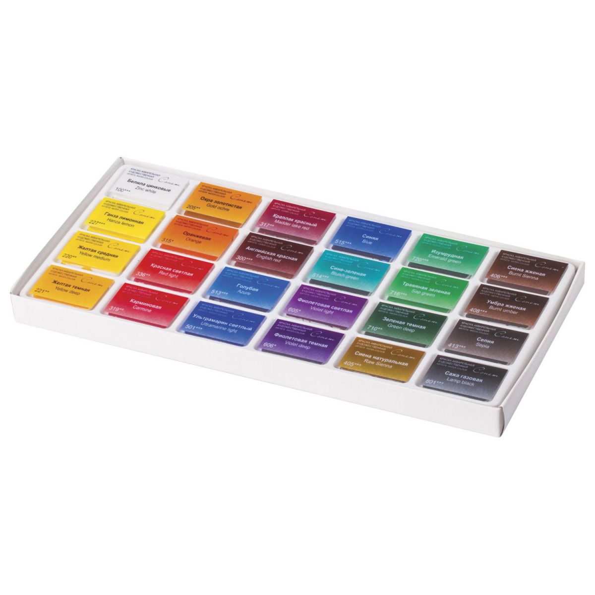 Краски серии «Сонет» изготовлены на основе высококачественных пигментов и связующих, обеспечивающих основные свойства акварельных красок – прозрачность, интенсивность и чистоту цвета. Хорошо смешиваются, размываются и разносятся, легко берутся на кисть.