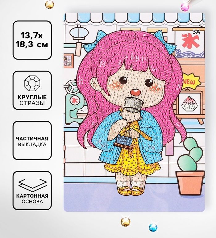 Читать все статьиАлмазная вышивка «Ичиго», 13.7×18.3 см, картон, с частичным заполнением