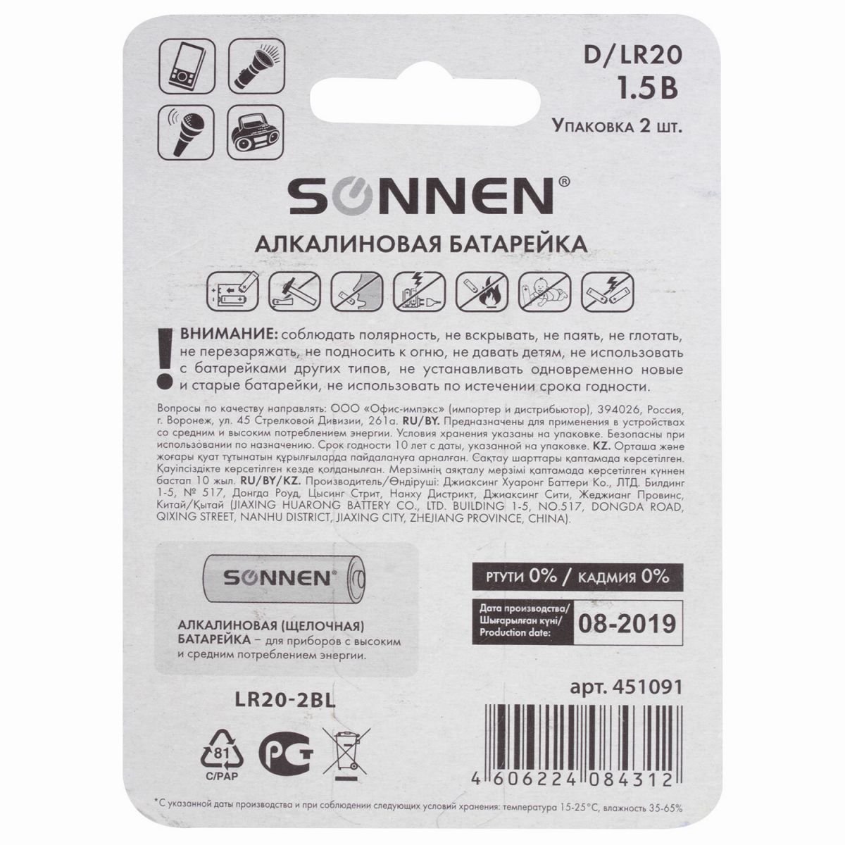 Алкалиновые батарейки SONNEN типоразмера D идеально подходят для приборов со средним и высоким потреблением энергии. Рекомендуется использовать в радиоприемниках, фонариках, детских игрушках и микрофонах.