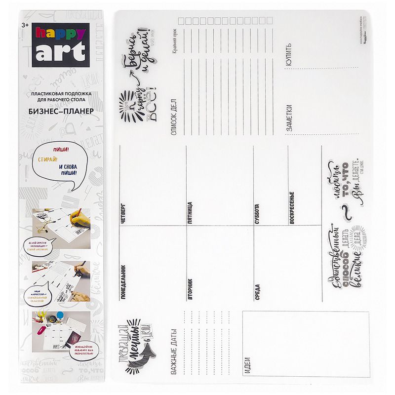 Читать все статьиБизнес-планер HappyLine, прозрачный, 48*34см, стираемая поверхность