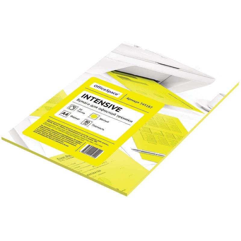 Читать все статьиБумага цветная OfficeSpace intensive А4, 80г/м2, 50л. (желтый)