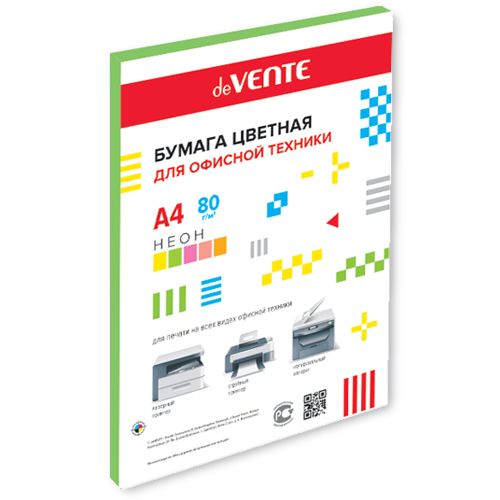 Читать все статьиБумага цветная, А4, 80г, deVente зеленая, неон, 50л.