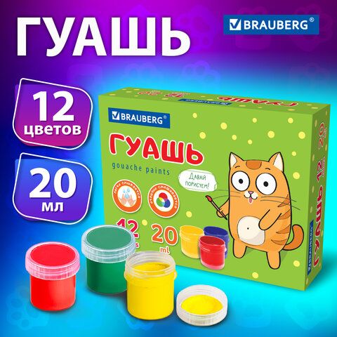 Читать все статьиГуашь BRAUBERG «Кот-энтузиаст», 12 цветов по 20 мл
