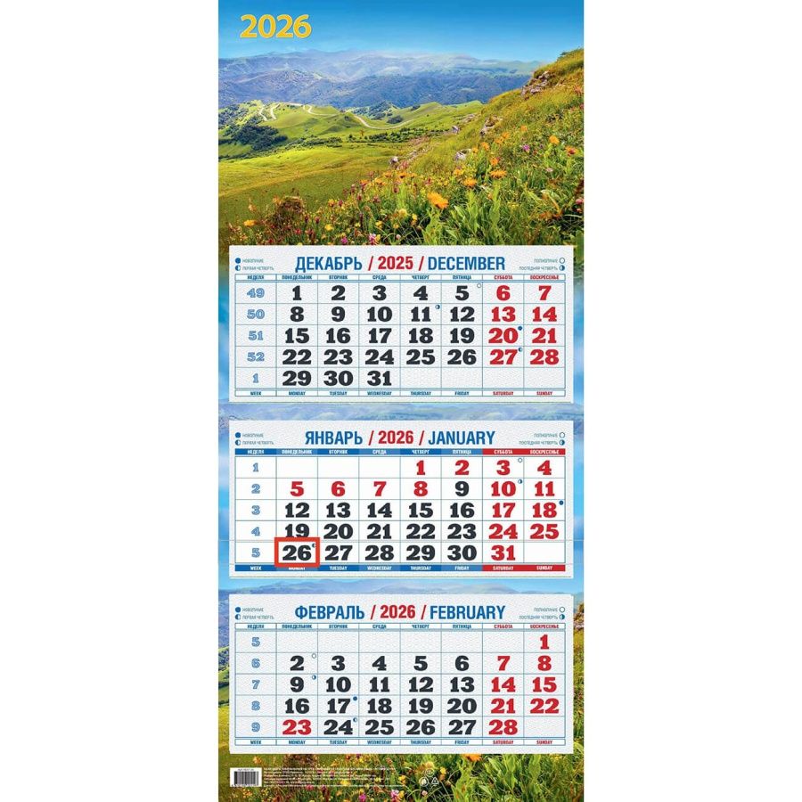 Читать все статьиКалендарь квартальный 2026г. 3 гребня, 3 блока, Атберг98 Летний день