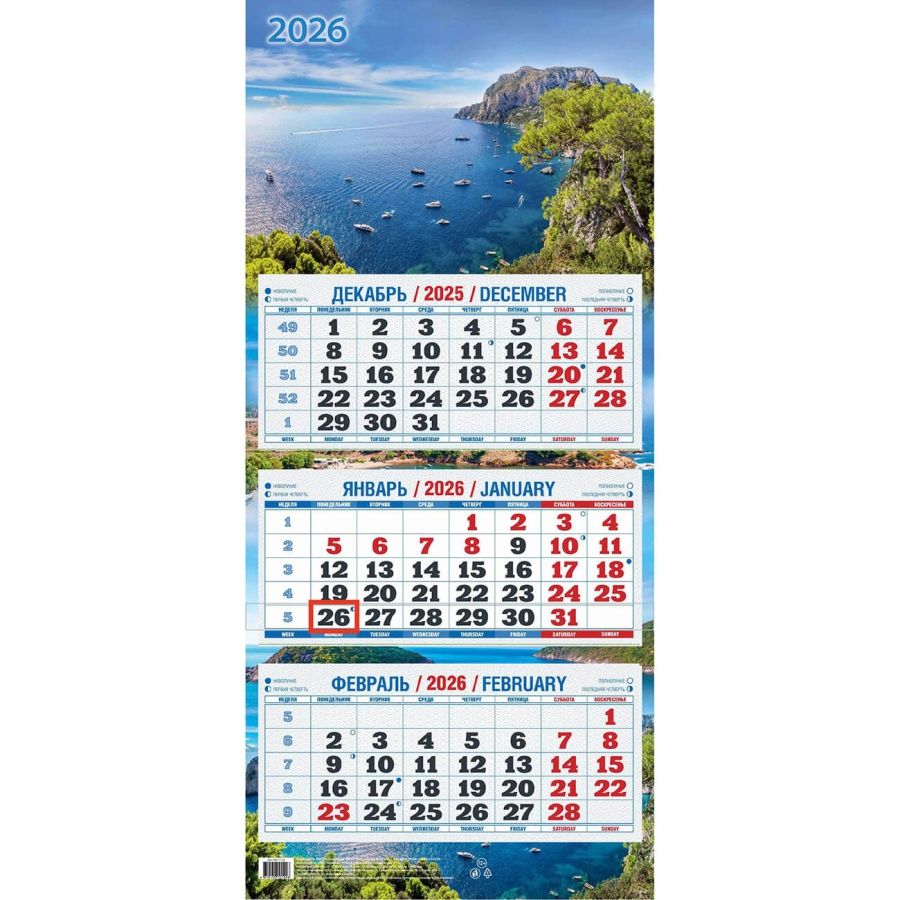 Читать все статьиКалендарь квартальный 2026г. 3 гребня, 3 блока, Атберг98 Тихая бухта