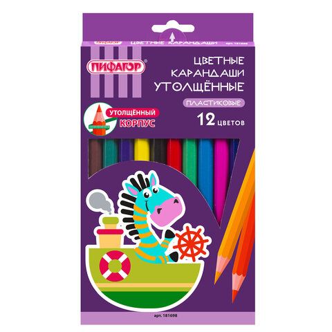 Читать все статьиКарандаши цветные ПИФАГОР «ЗЕБРА», 12 цветов, утолщенные, пластиковые