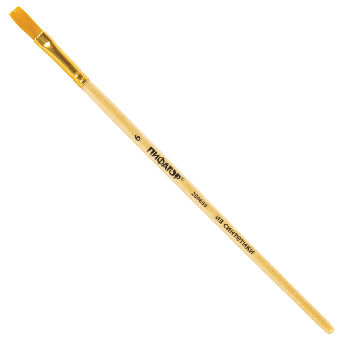 Кисть ПИФАГОР, синтетика, плоская, № 6, 200859