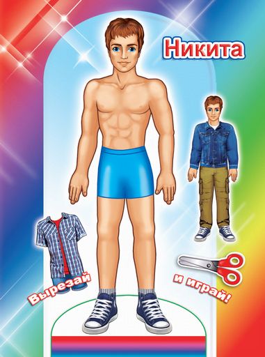 Книга-вырезалка КУКЛА Никита 6 х 21 см, 12 стр.