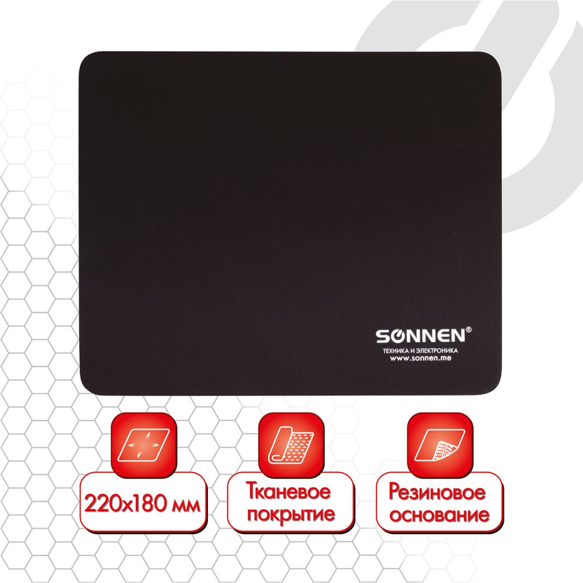 Читать все статьиКоврик для мыши SONNEN «BLACK», резина+ткань, 220х180х3 мм