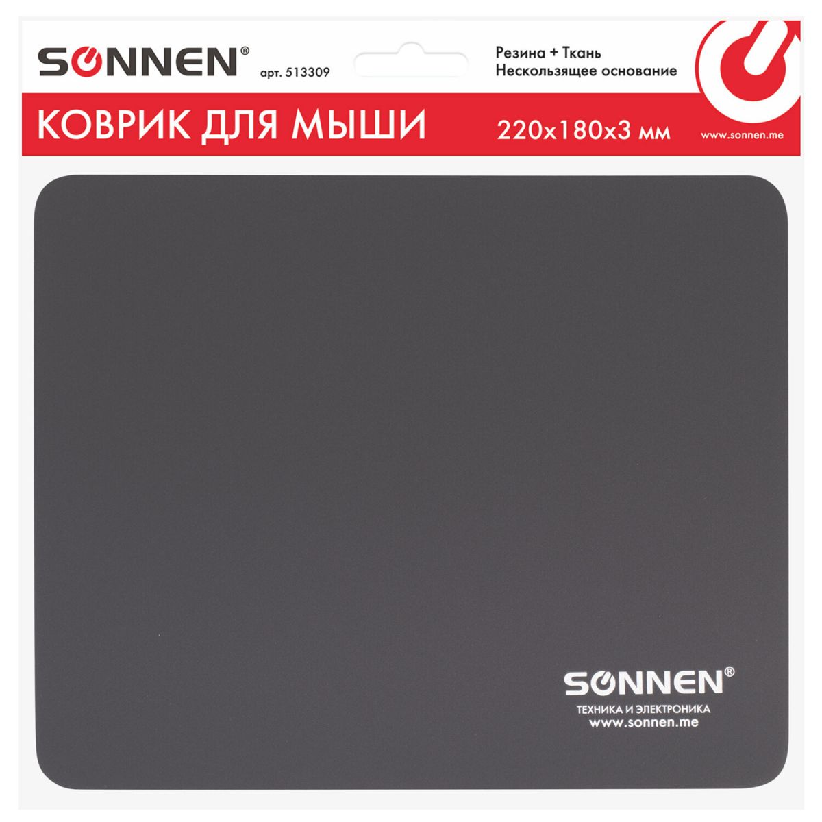 Коврик для мыши SONNEN «BLACK», резина + ткань, 220х180х3 мм, 513309