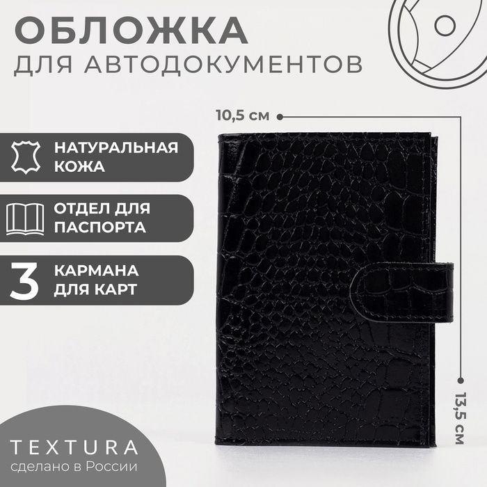 Читать все статьиОбложка для автодокументов на кнопке TEXTURA, цвет чёрный