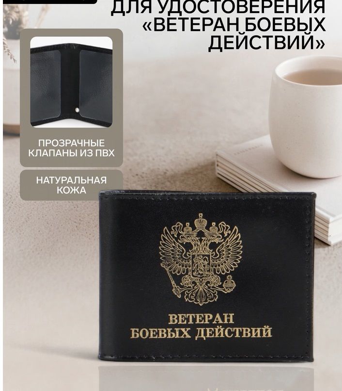 Читать все статьиОбложка для удостоверения «Ветеран боевых действий», чёрная