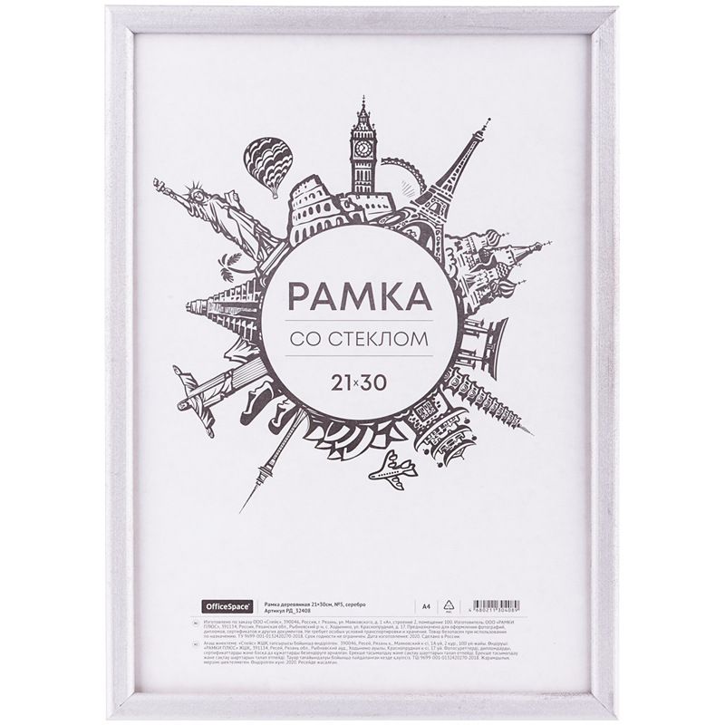Читать все статьиРамка деревянная 21*30см, OfficeSpace, №5, серебро