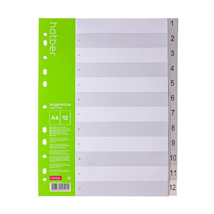 Читать все статьиРазделитель цифровой А4 Hatber, пластик, 12л