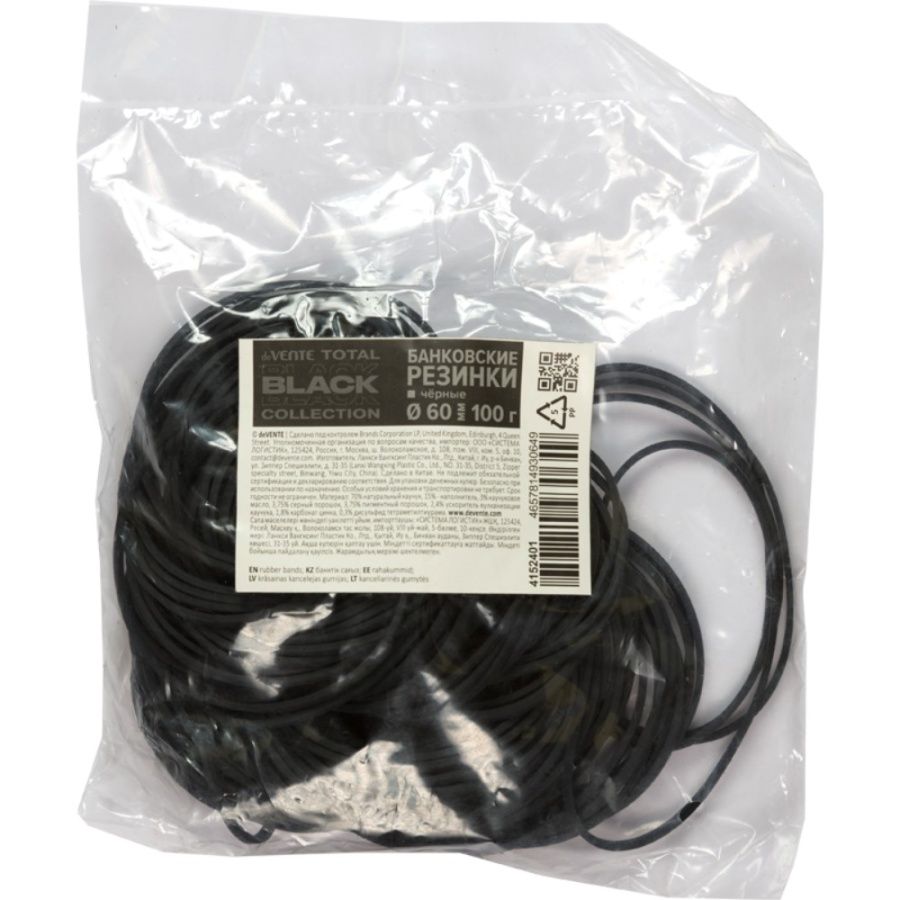 Читать все статьиРезинка банковская deVENTE. «TOTAL BLACK» D-60мм 100г, черная, пакет