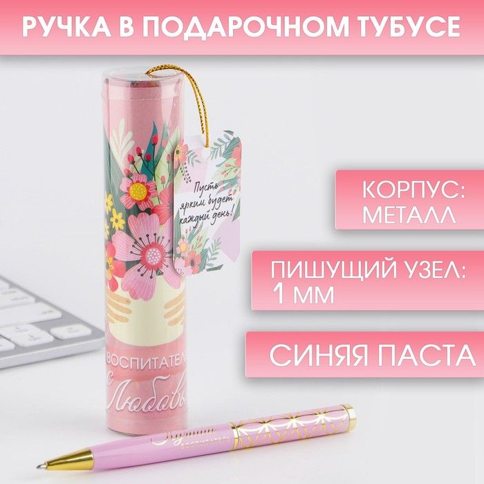Читать все статьиРучка металлическая в тубусе «Лучший воспитатель», синяя паста, 1.0 мм
