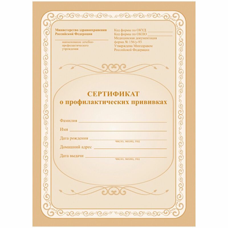 Сертификат о профилактических прививках 6л., A5, на скрепке, блок офсет