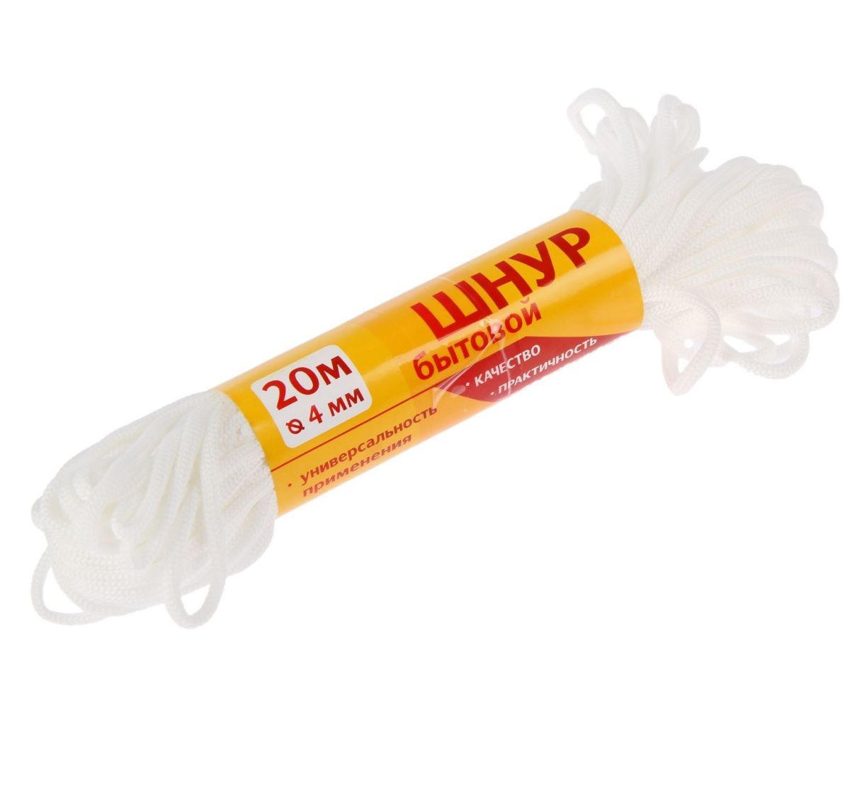 Читать все статьиШнур бытовой, полиэфир, d=4 мм, 20 м, цвет белый