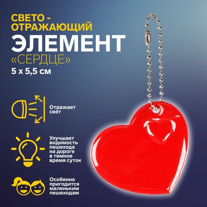 Светоотражающий элемент «Сердце», 5 × 5,5 см, цвет МИКС