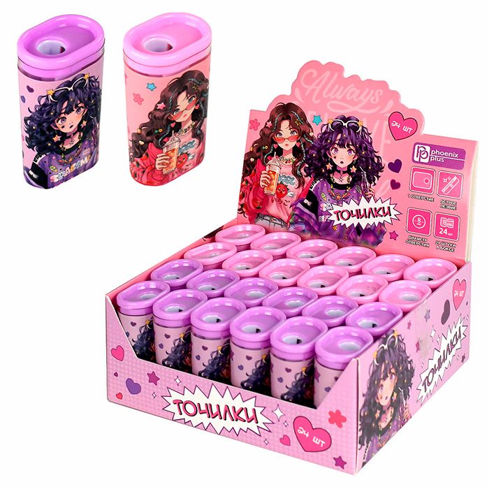 Читать все статьиТочилка пластиковая Феникс+ «Модницы» 1 отверстия, с контейнером